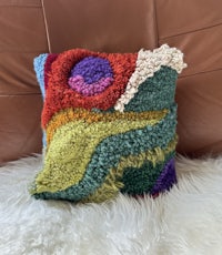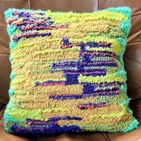 Meadow. 2024. Handcrafted punch needle pillow with wool filled with yarn trimmings from rugs.