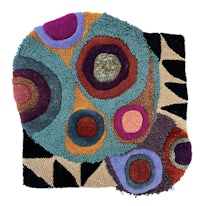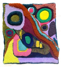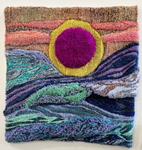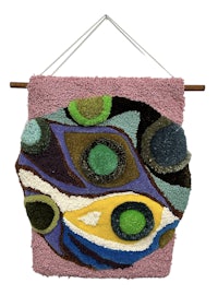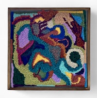 Meander. 2024.. 26” x 23”. Acrylic, wool and cotton wall rug.
