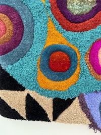 Acrylic and wool wall rug tufted with love in Seattle, WA. Back is finished with 3 D-rings for easy wall hanging.
