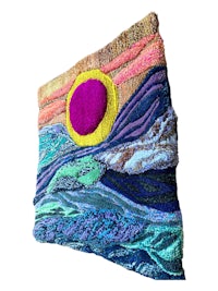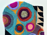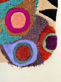 Cotton wall rug tufted with love in Seattle. Roughly 20” x 18”. Finished with a brass D-ring on the back for easy hanging.