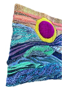 Acrylic, wool and cotton wall rug tufted with love in Seattle, WA. Finished with 3 brass D-rings on the back for easy wall hanging.